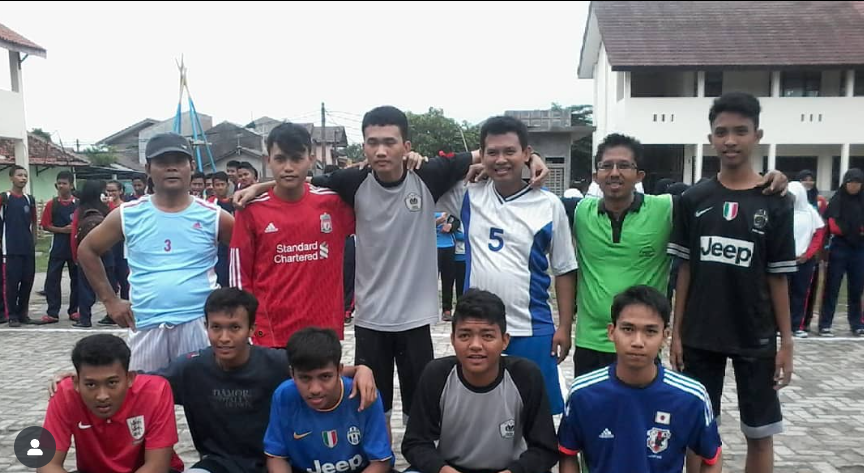 Gambar 2. Foto bersama sebelum match classmeeting tim guru melawan tim pemenang classmeeting. Kebersamaan ini yang paling berkesan bersama guru.