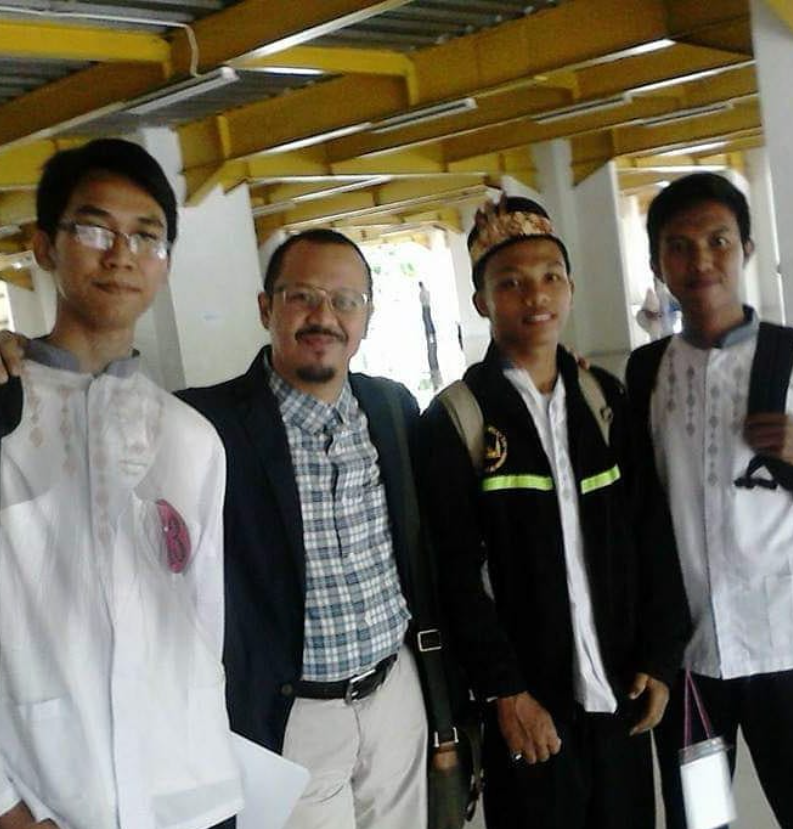 Gambar 2. Sebagian anggota Tim nasyid Senandung Ibu SMAN 24 Kab Tangerang berfoto dengan salah satu juri lomba nasyid di UI tahun 2015 (Kang Teddy Snada)