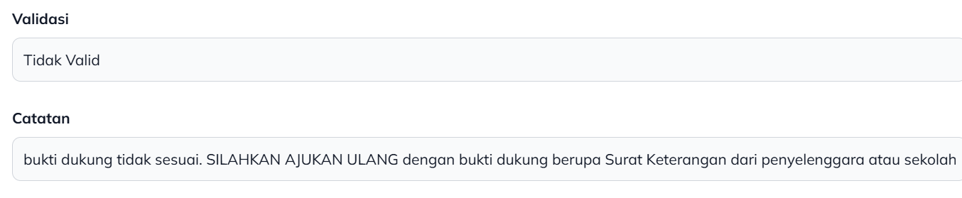 Gambar 6. Contoh pengajuan yang ditolak dengan catatan diperbaiki "bukti dukung". Ketika itu penulis diminta mengirimkan bukti SK dari penyelenggara.