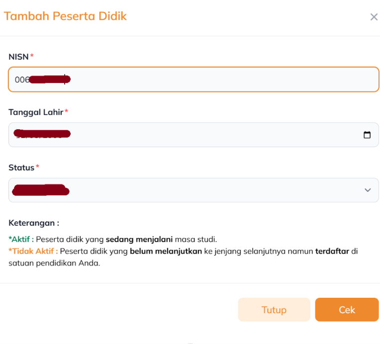- - Pilih atau cari nama siswa (biasanya sudah terhubung dengan data Dapodik)